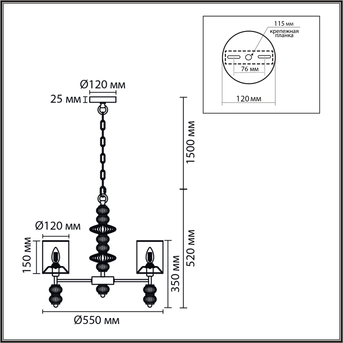 Светильник Высота без цепи, мм