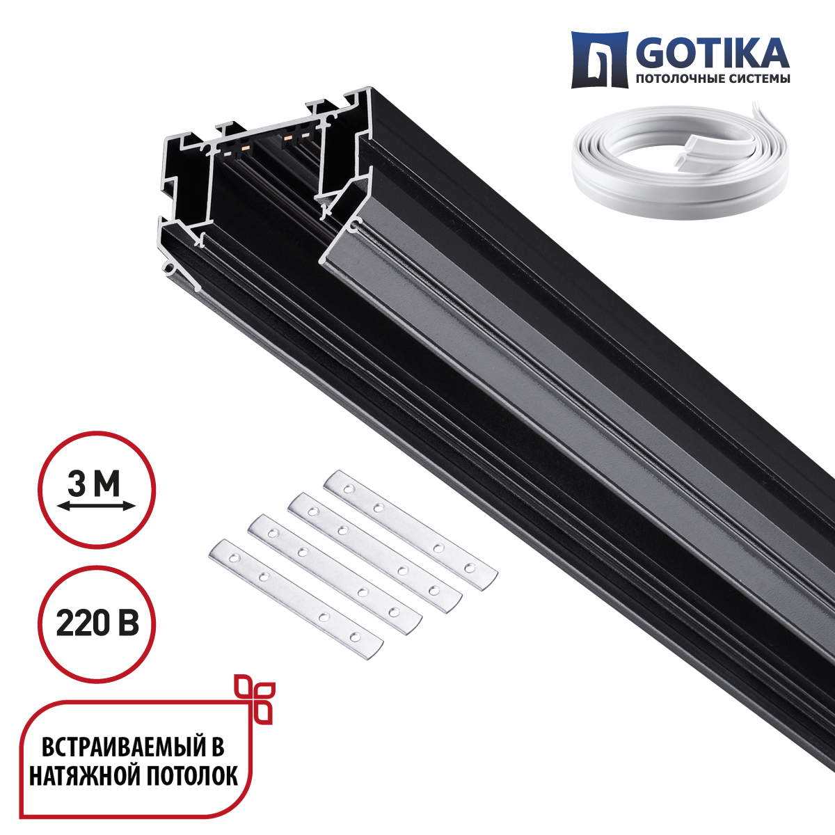 Шинопровод для натяжного потолка 3м, в комплекте соединительная планка 4шт